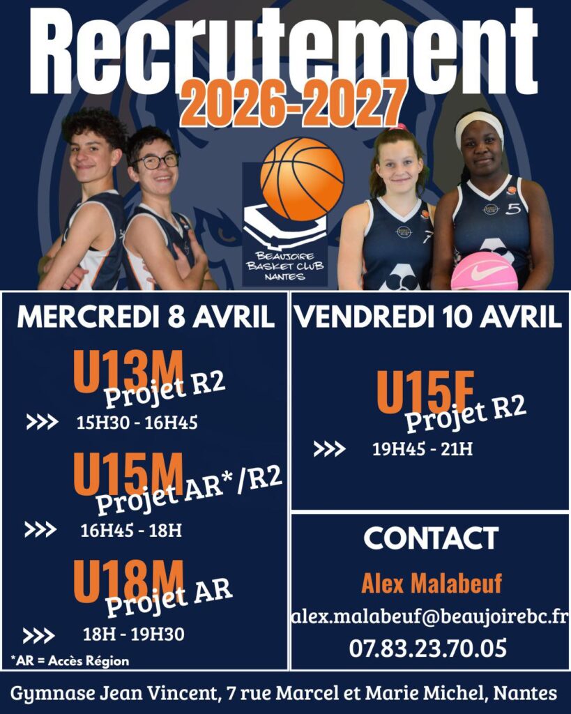 Les détections sont ouvertes au Beaujoire Basket Club ! 8 & 10 avril 2026