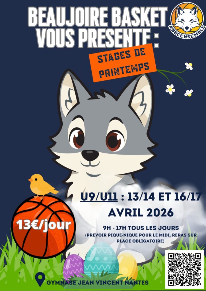 U9/U11 : https://www.helloasso.com/associations/beaujoire-basket-club/evenements/stage-printemps-u9-u11