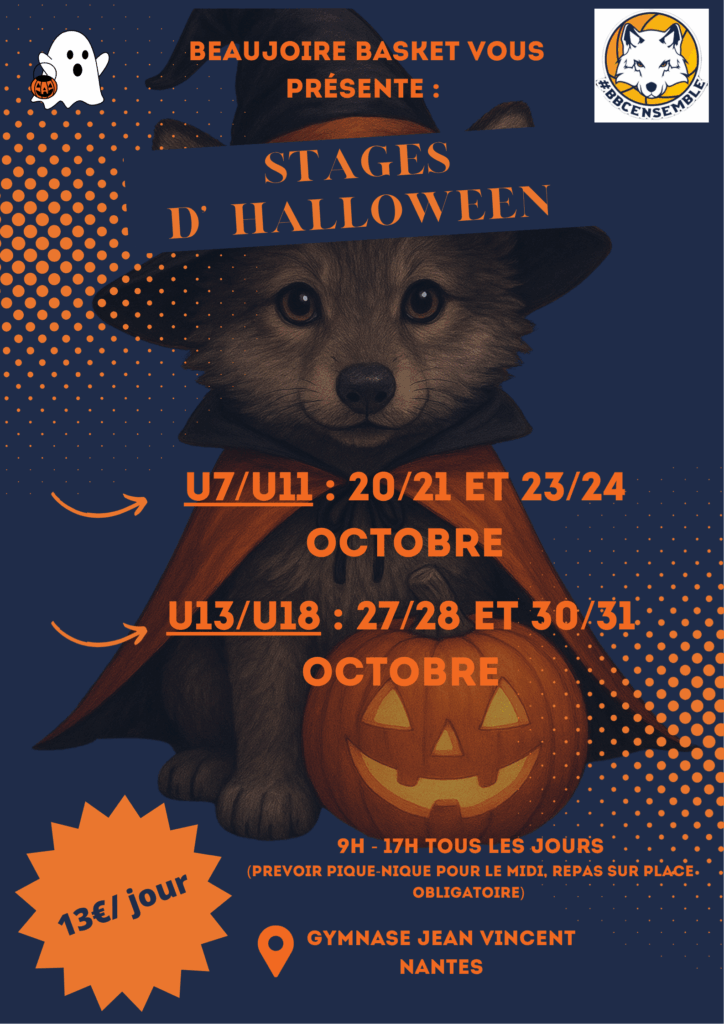 - U13-U18 : https://www.helloasso.com/associations/beaujoire-basket-club/evenements/stage-halloween-u13-u18